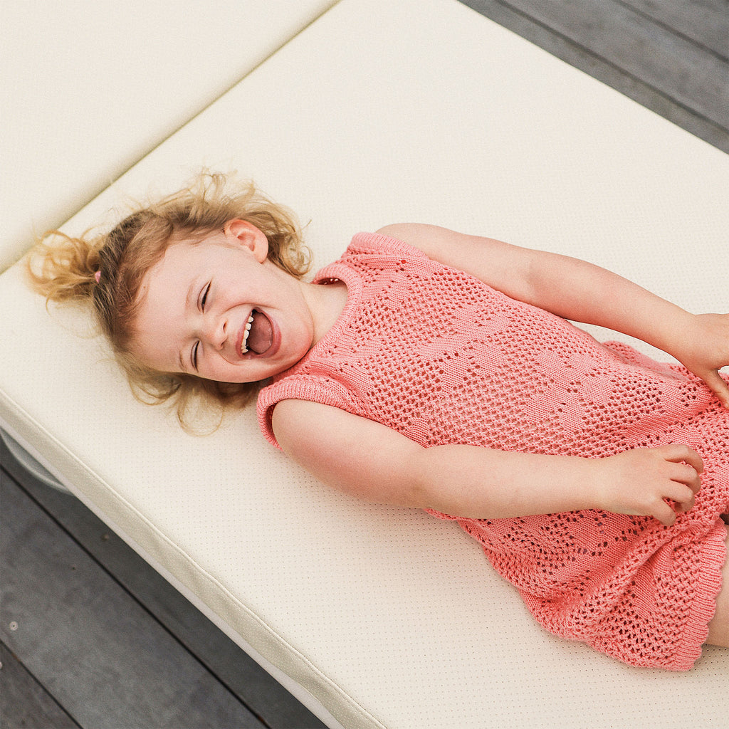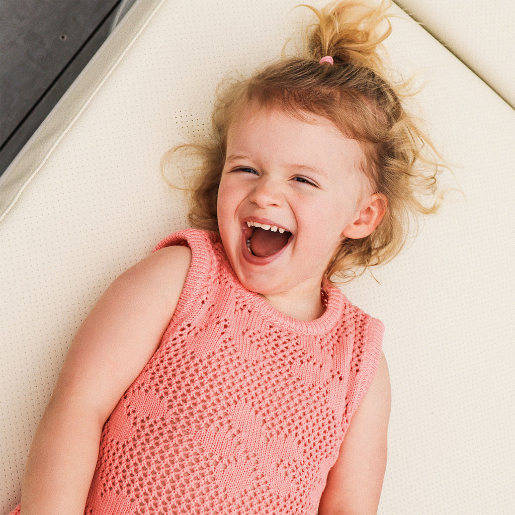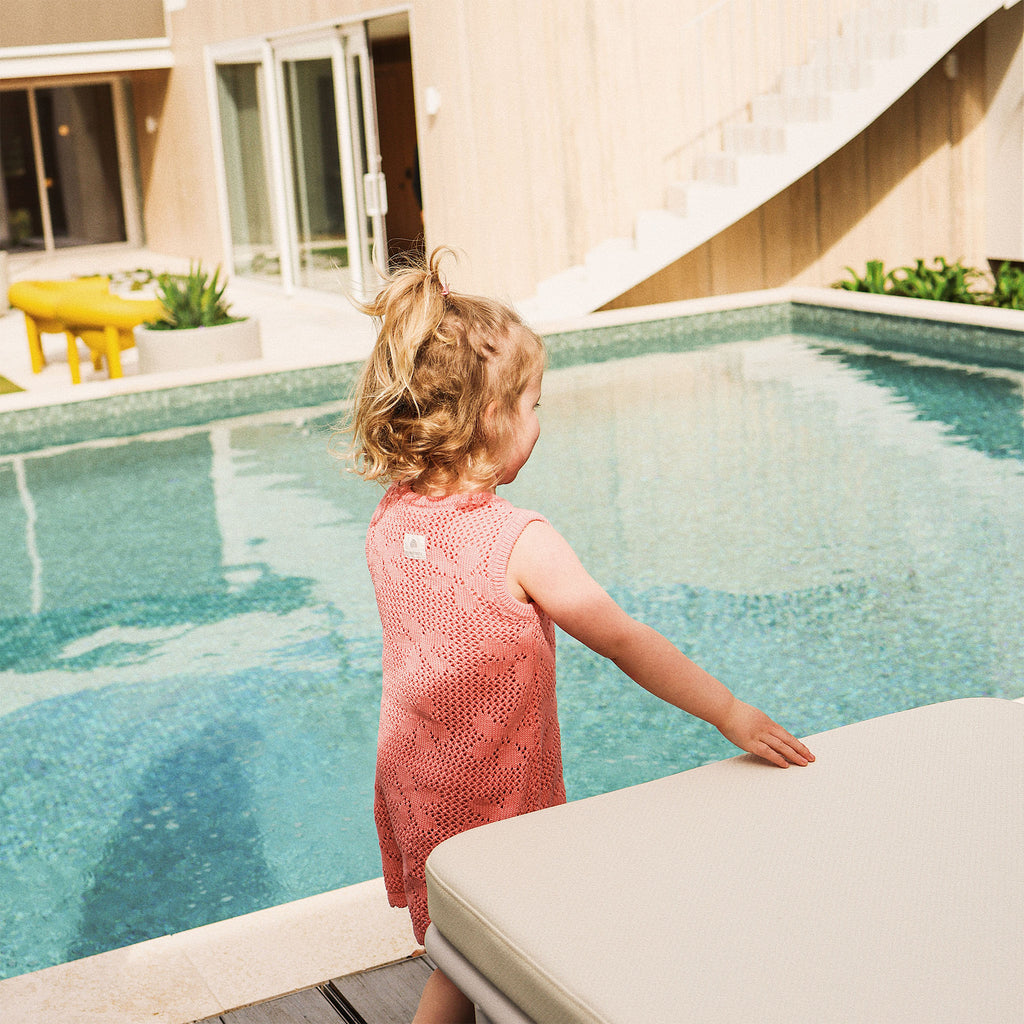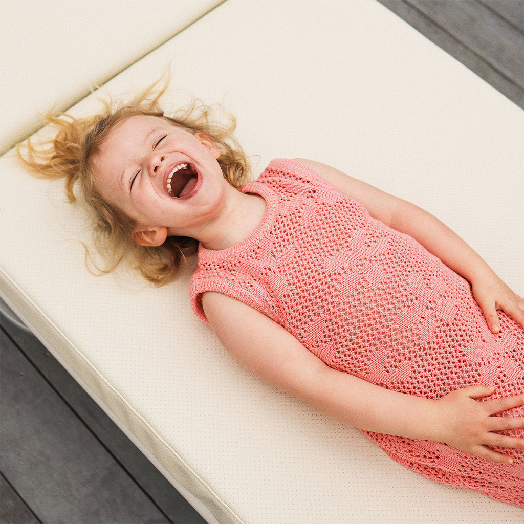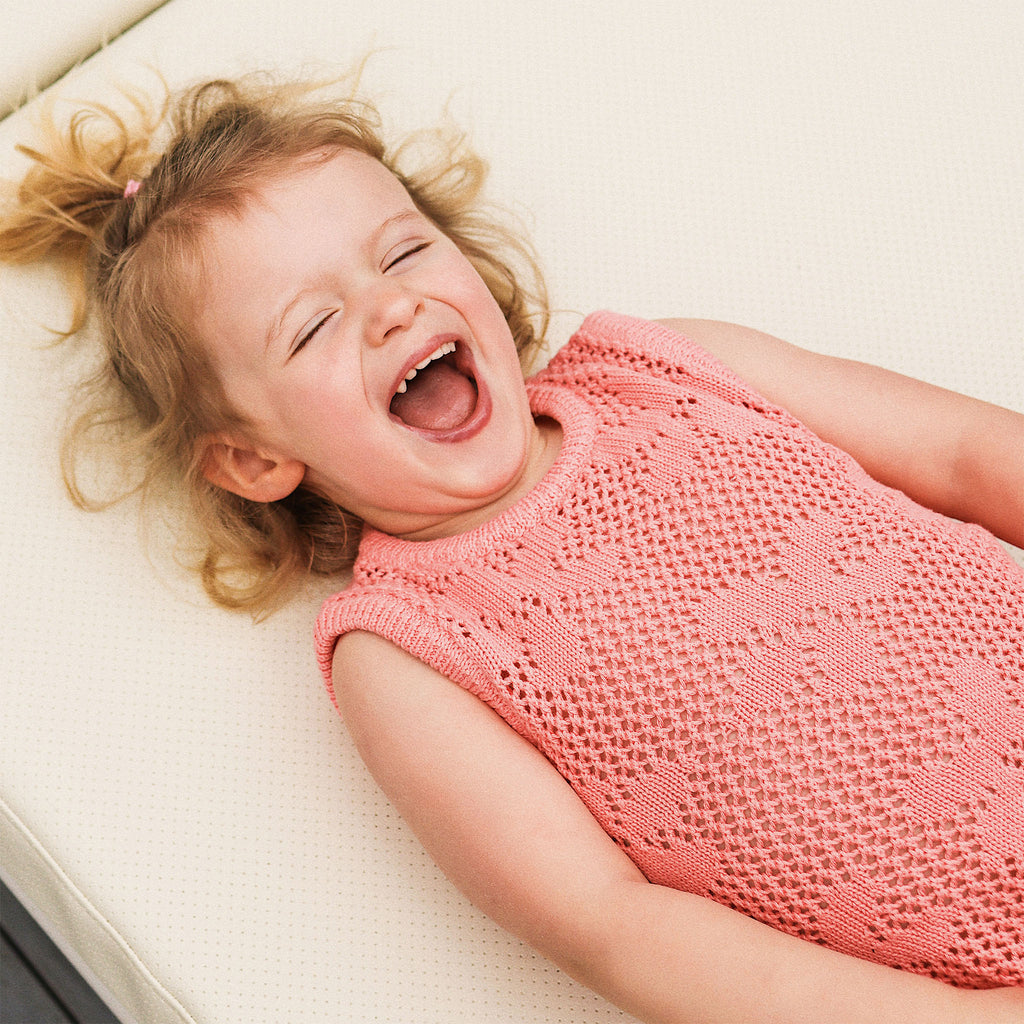 Our Crocheted Sleeveless Dress is made from 100% organic cotton with an airy, handcrafted feel. Featuring delicate crochet flower detailing and a soft pink hue, this elevated piece is perfect for warm days, special outings, and twirling in the sun. Lightweight, breathable, and designed for all-day comfort.