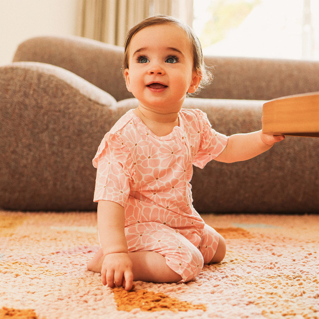 Day or Night Short Sleeve Frill Onesie - Hibiscus