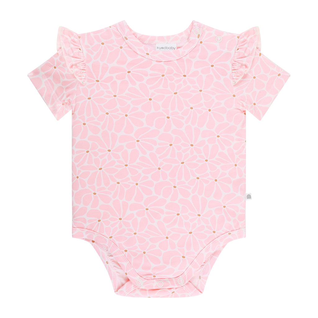 Frilled Short Sleeve Bodysuit - Hibiscus