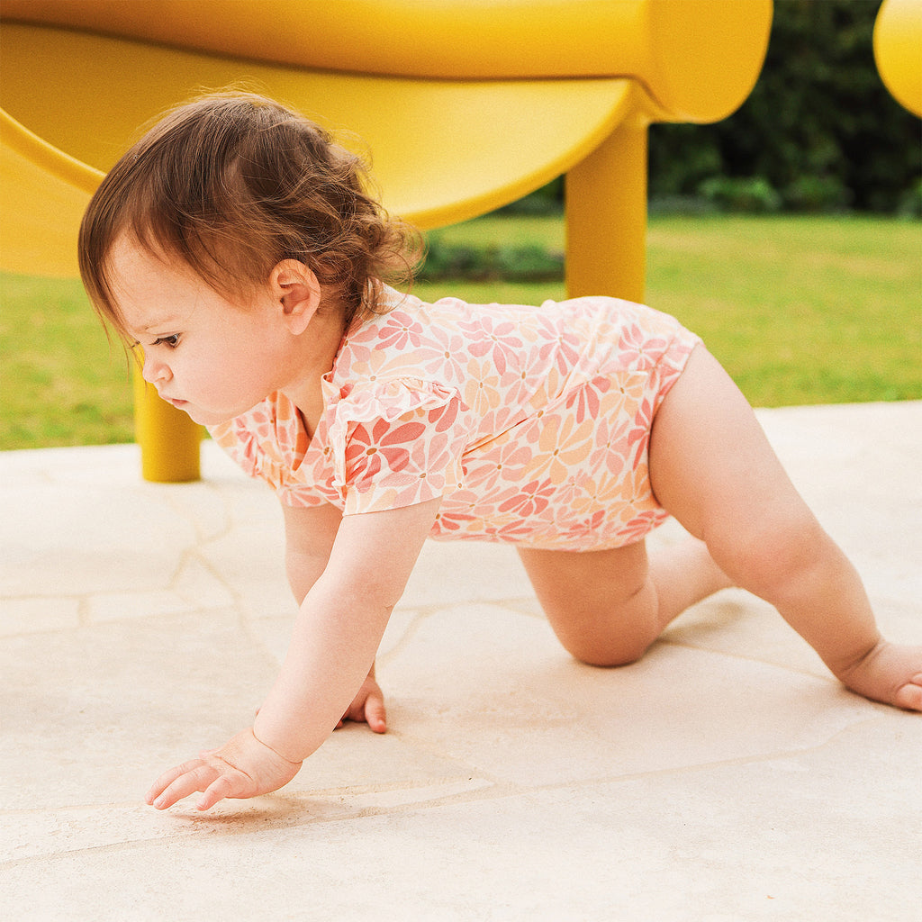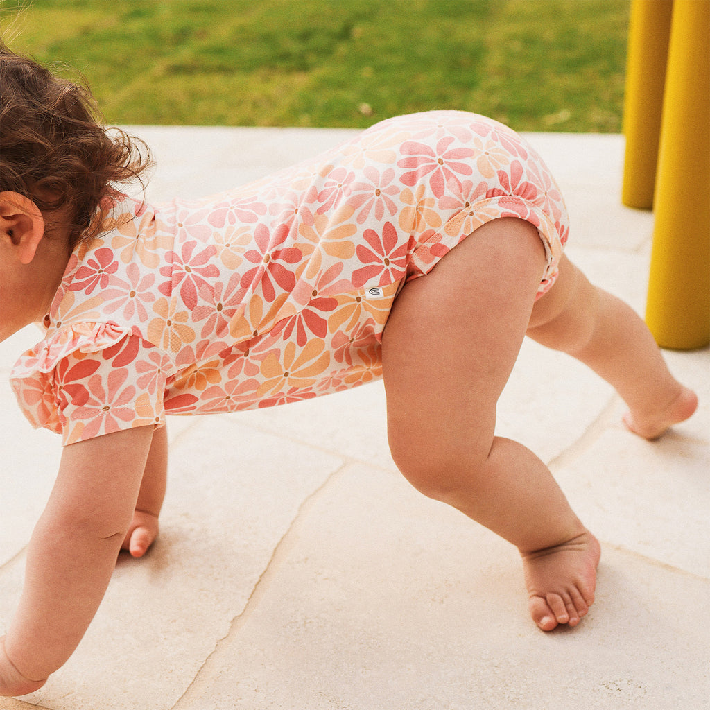 Our Frill Sleeve Bodysuit is crafted from sustainable viscose elastane for soft stretch and all-day comfort. Featuring sweet shoulder frills and convenient crotch snaps, it makes dressing and changing effortless. Breathable, easy to wash, and versatile - it's perfect for everyday wear and active adventures!