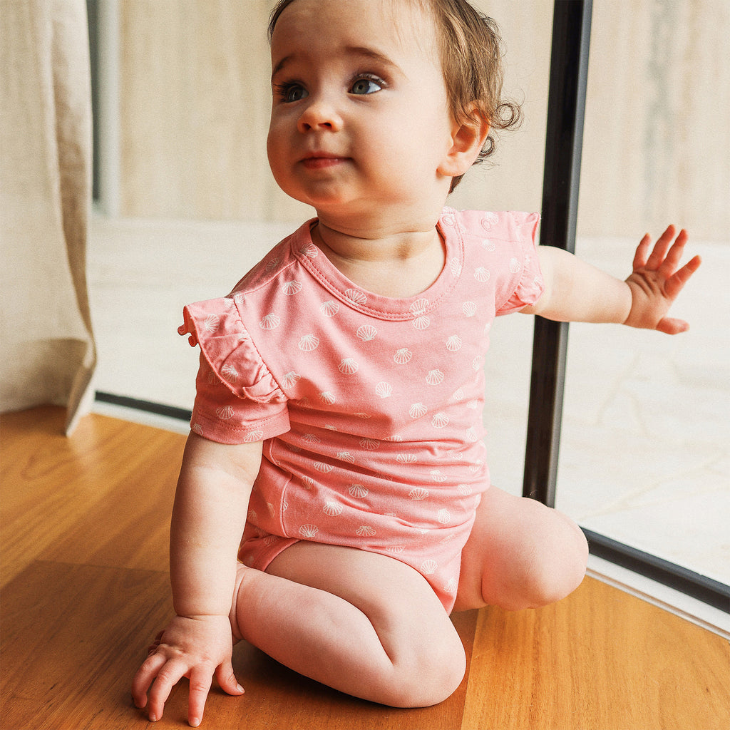 Frilled Short Sleeve Bodysuit - Seashell Pink