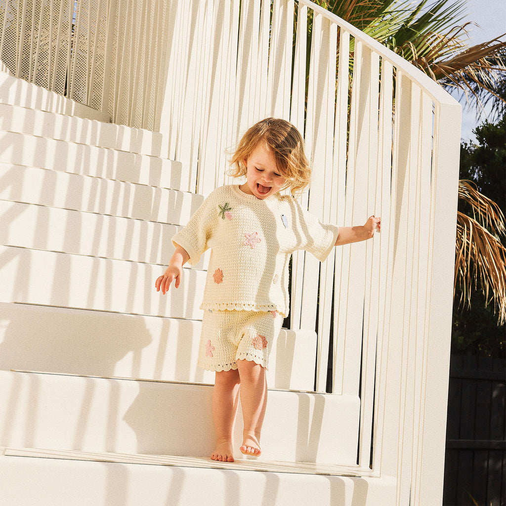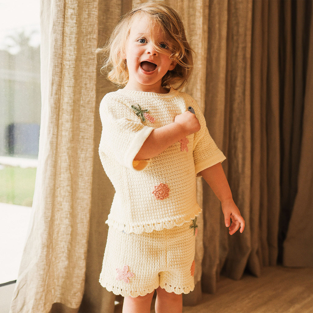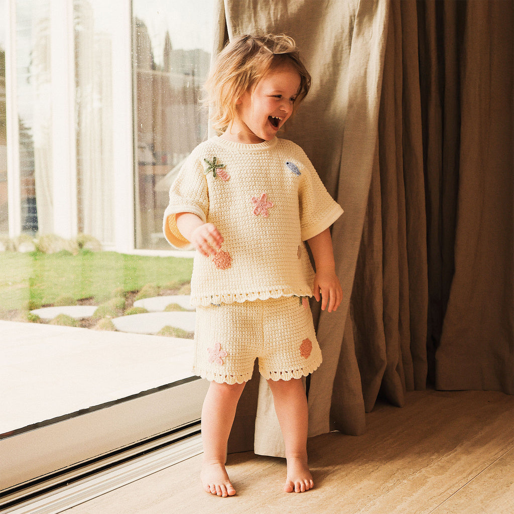 Our Beach Motif Knitted Tee is a true summer standout. Crafted from breathable organic cotton in an intricate crochet knit, it features artisanal coastal motifs for a playful, elevated look. Lightweight and breezy, it’s a statement piece made for sunny days and warm-weather adventures!