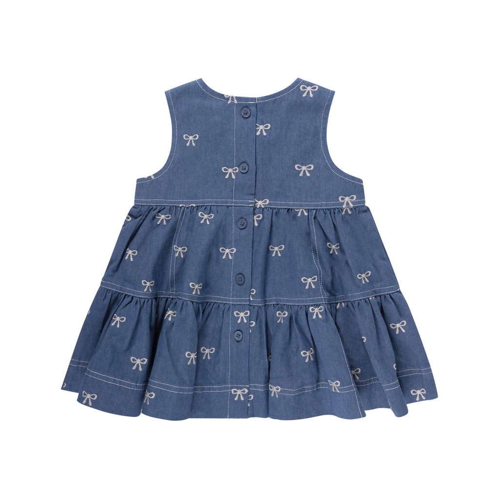 The Kynd Baby Denim Dress in Denim is made from soft cotton for everyday comfort. Its sleeveless design, gathered skirt and button-back fastening make it ideal for layering or wearing alone. Machine washable and designed in Australia for little ones on the move.