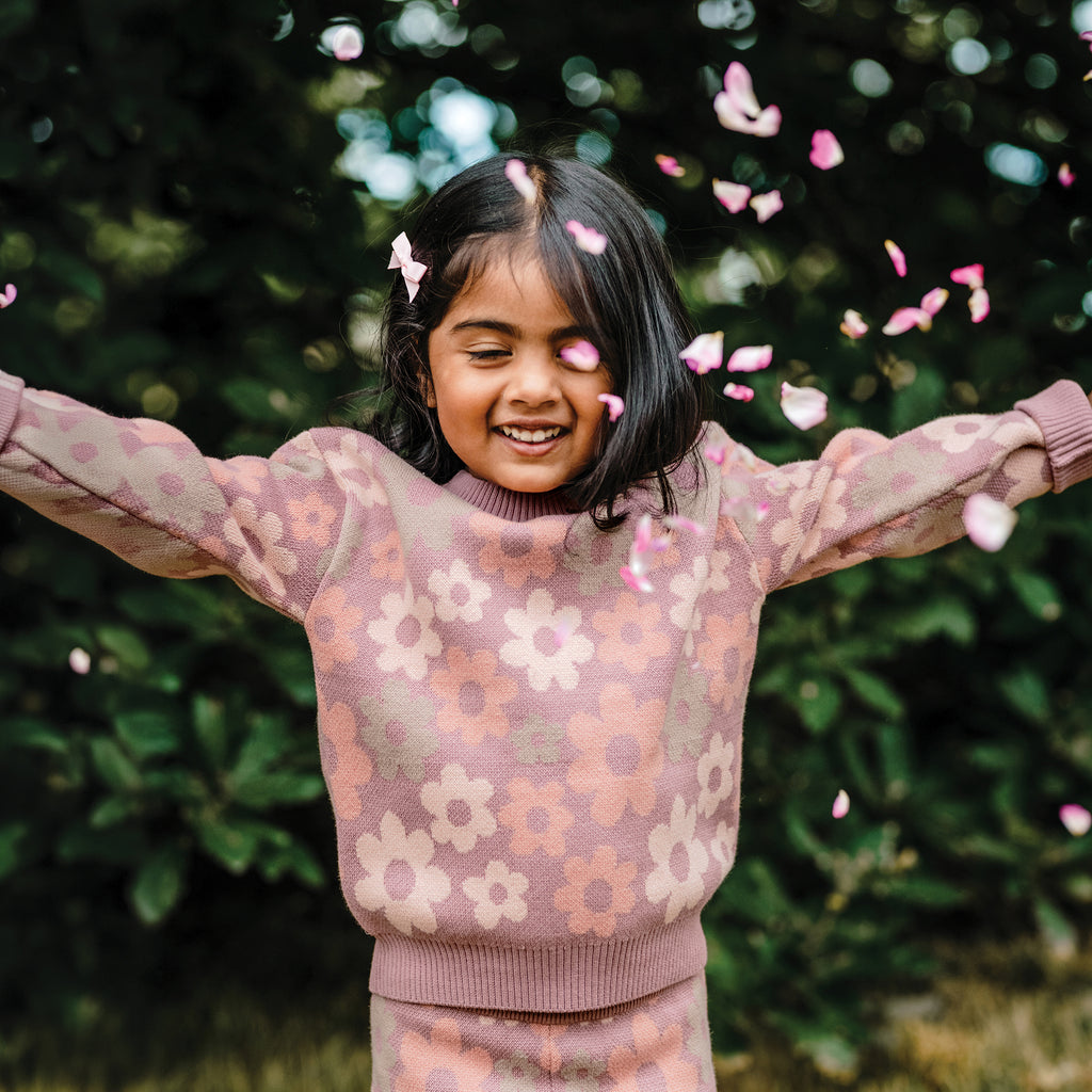 Add a cosy, playful layer with the Kynd Baby Knit Jumper in Bold Floral. Crafted from 100% organic cotton with soft, cosy yarns, this jumper features decorative jacquard detailing, ribbed cuffs, hem and neckline, and turn-up sleeve cuffs. True to size, but buy the next size up for a relaxed, oversized look. Designed in Australia, it’s perfect for layering and everyday wear.