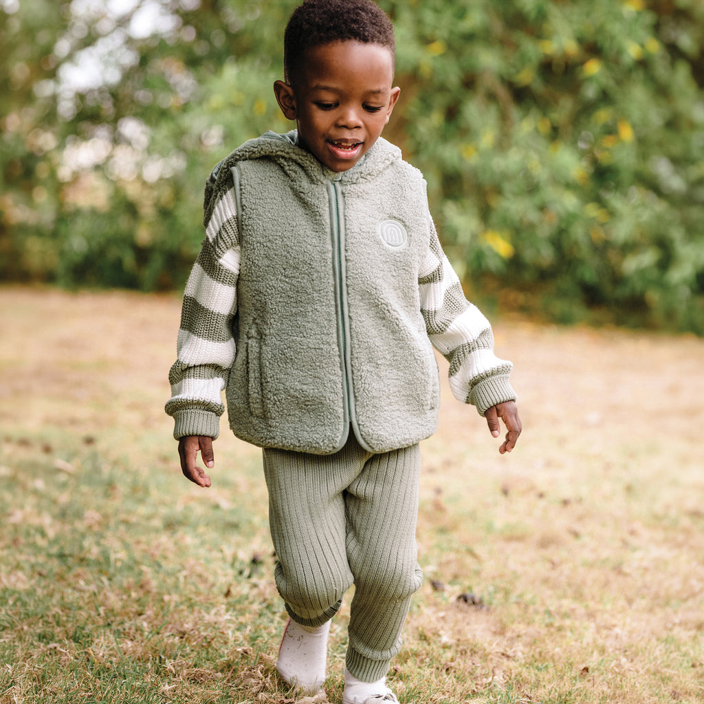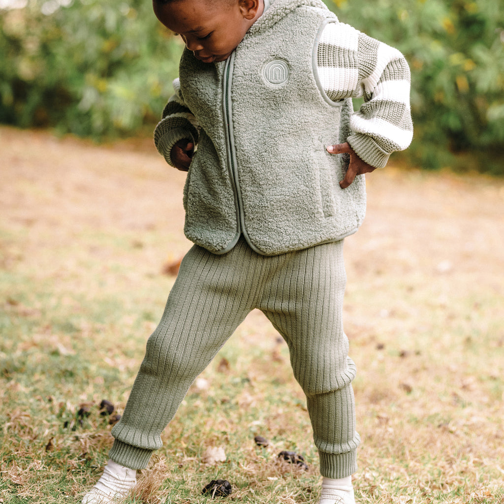 Keep little ones comfy in the Kynd Baby Organic Chunky Rib Knit Pant in Olive. Crafted from 100% organic cotton with soft, cosy yarns, these pants feature a chunky rib design, ribbed cuffs and hem, and an elasticated waistband for easy dressing. True to size, machine washable, and designed in Australia, they’re perfect for everyday play and layering. Tip: remove hanger tape before wear.