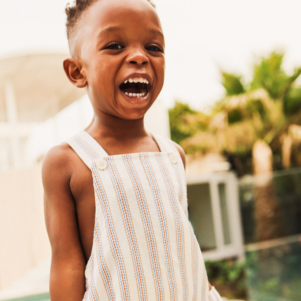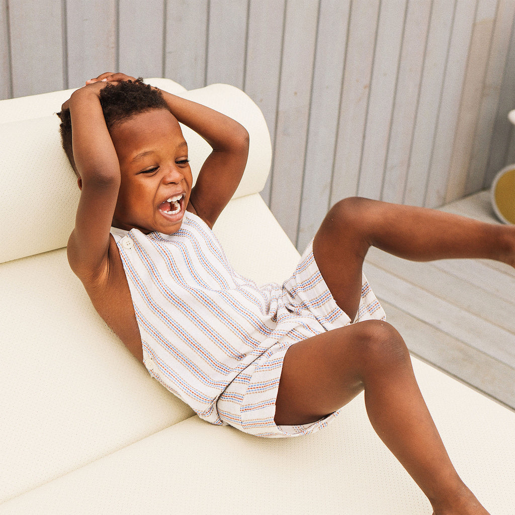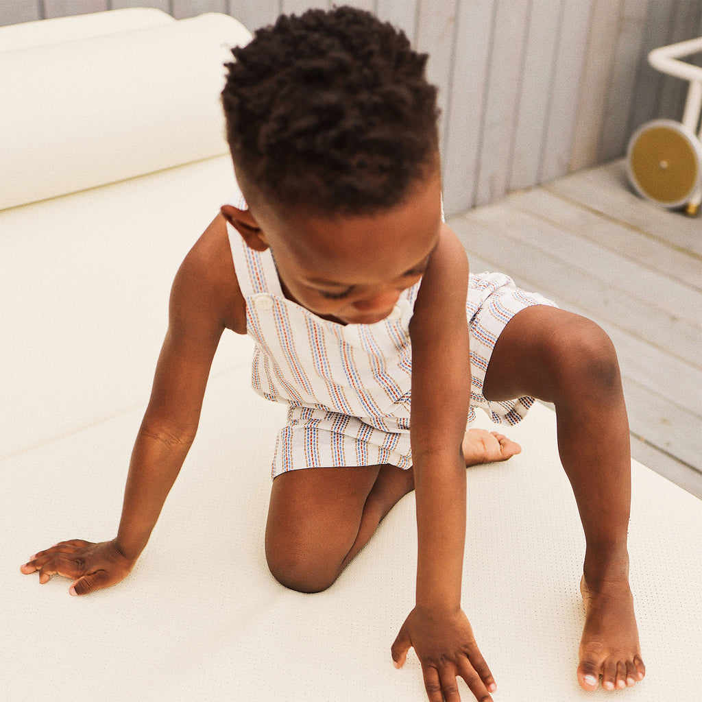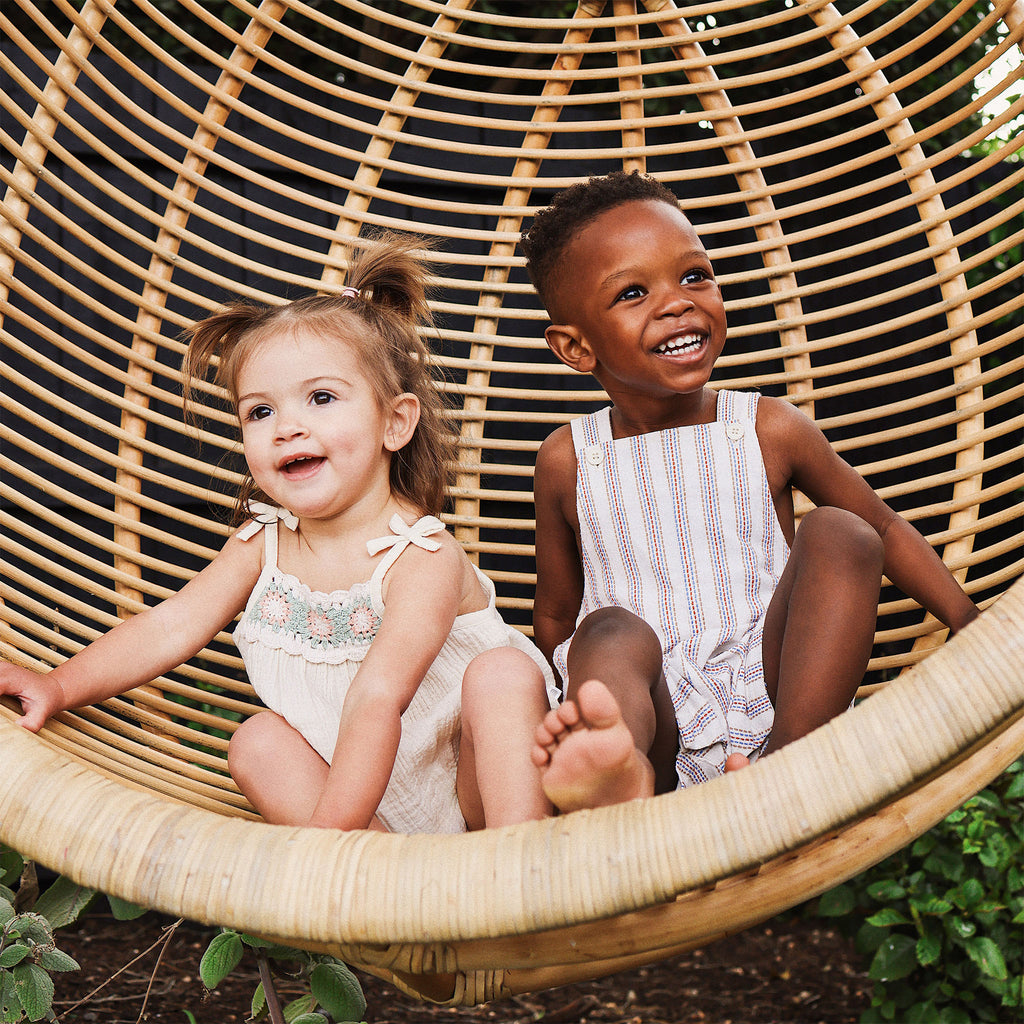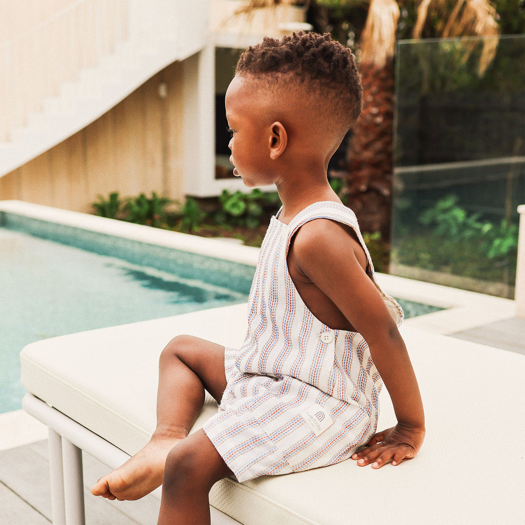 This neutral-toned Woven Overall is crafted from 100% cotton with subtle embroidered detailing for a playful finish. Lightweight and breathable, it’s perfect for layering through the seasons or breezy sunny days!