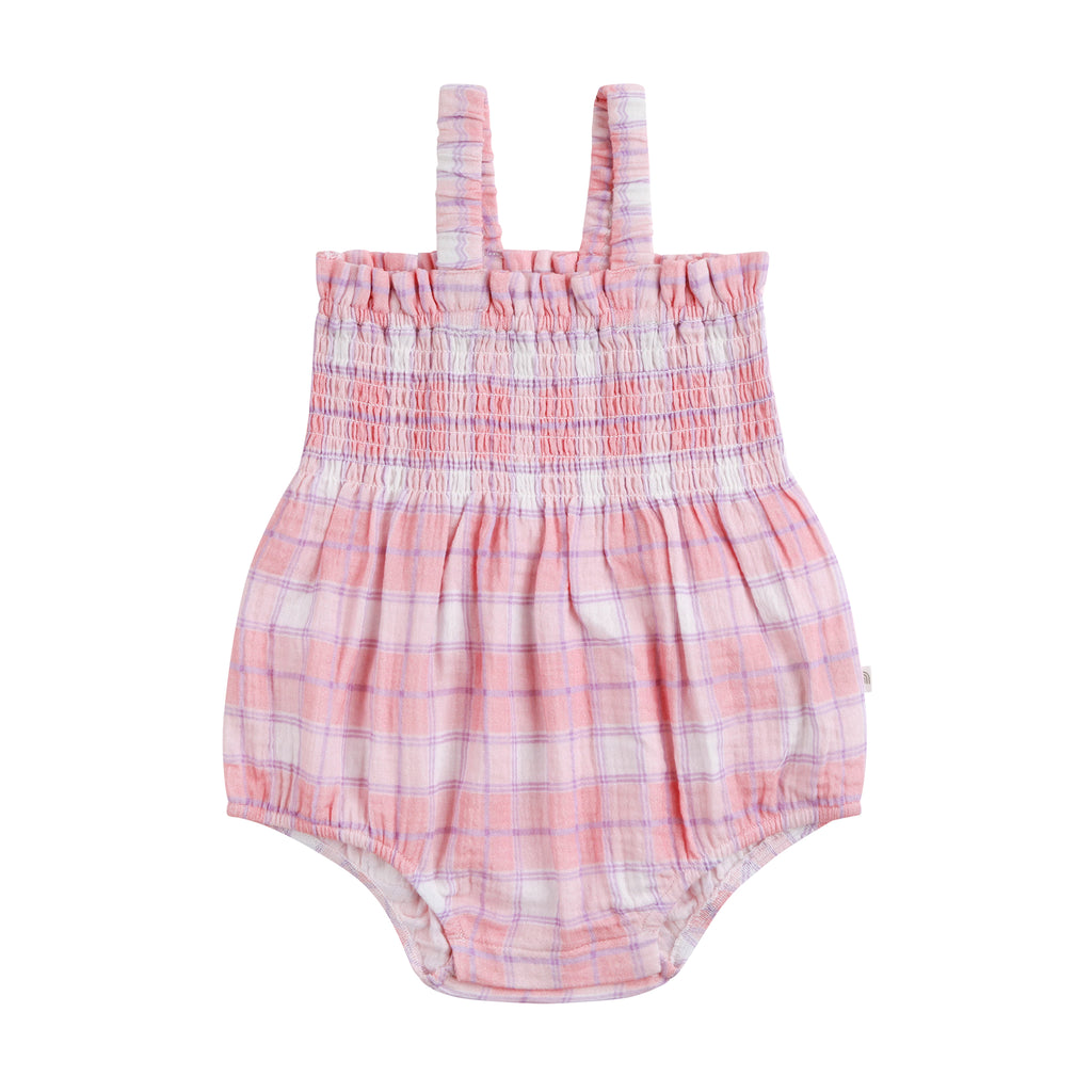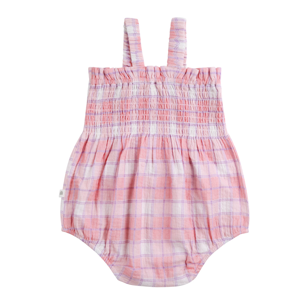 Our timeless Shirred Woven Romper is made from soft, breathable cotton with a pink check pattern and gentle shirring for a vintage-inspired look. Stretchy, comfy, and effortlessly sweet, it’s lightweight and perfect for sunny days and playful adventures.