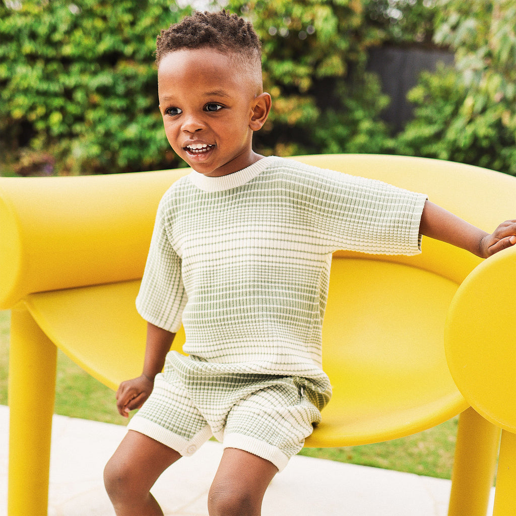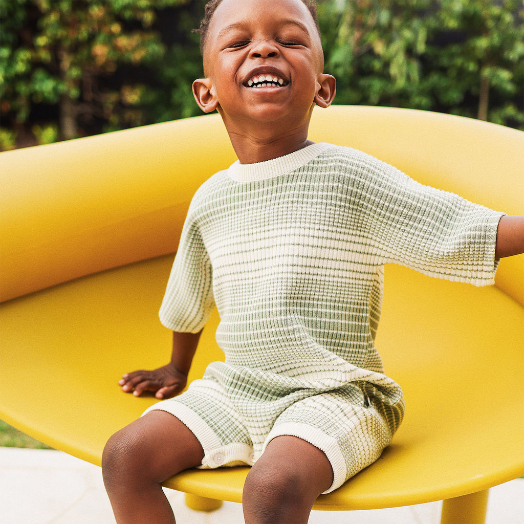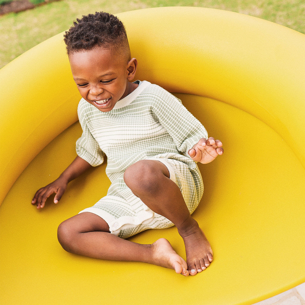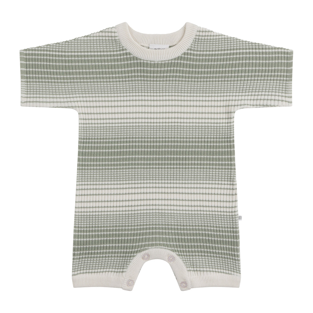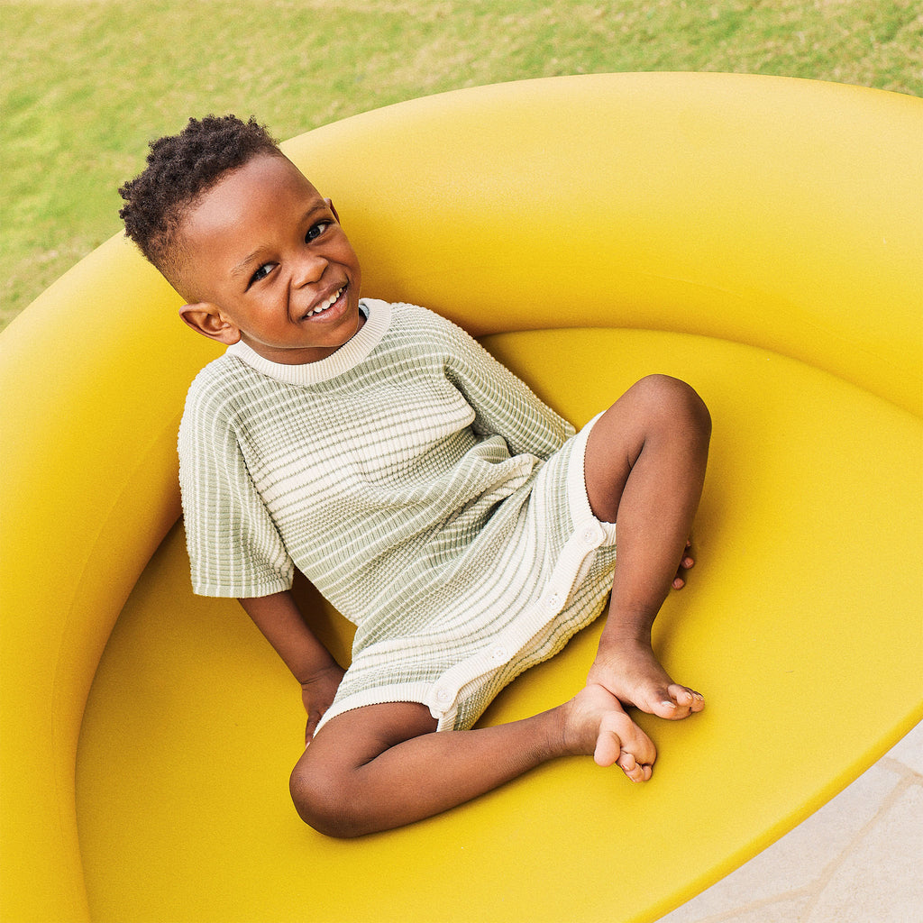 Our Slouchy Rib Knit Rompers are crafted from airy organic cotton, perfect for your baby's all-day comfort. The crew neck rib band and button closures to in-leg make dressing a breeze. A great piece for playtime and tiny adventurers!